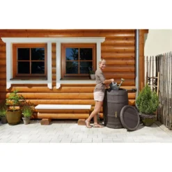 Garantia Regentonne Barrica Regenfass, 420 Liter, Rund, Braun, Mit Deckel