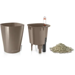 Lechuza Übertopf MINI-DELTINI, Taupe Hochglanz, 10 X 10 X 13 Cm, Kunststoff, Erdbewässerungssystem