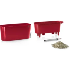 Lechuza Übertopf Cube Glossy Triple, Scarlet Rot, 40 X 14 X 13,5 Cm, Kunststoff, Bewässerungssystem