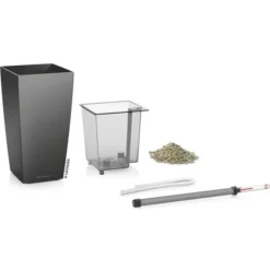 Lechuza Übertopf CUBICO Cottage 40 Graphitschwarz, 39,5 X 39,5 X 75,5 Cm, Quadratisch, Kunststoff