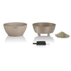Lechuza Übertopf CUBETO Stone 40 Sandbeige, Ø 40 X H 18 Cm, Kunststoff, Erdbewässerungssystem