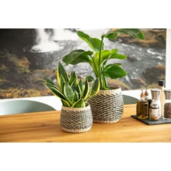 Decorasian Übertopf Korb 2er Set, Natur, Ø 20 Cm / Ø 25 Cm, Seegras