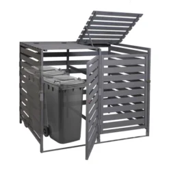 Mendler Mülltonnenbox HWC-H62, Bis 240 Liter, Für 2 Mülltonnen, Abschließbar, Grau, Holz