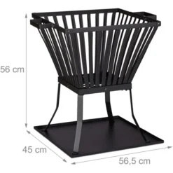 Relaxdays Feuerschale 10026548 XL, 56 X 56,5cm, Stahl, Mit Feuerhaken