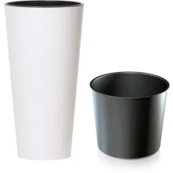 Prosperplast Übertopf Tubus Slim Weiß, Ø 40 X H 76,2 Cm, Rund, Kunststoff