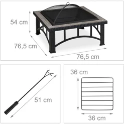 Relaxdays Feuerschale 10033790, 76,5 X 76,5cm, Stahl, Mit Feuerhaken Und Funkenschutz