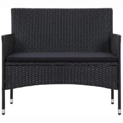 VidaXL Gartenbank 45814, 2-Sitzer, Mit Armlehnen, Wetterfest, Schwarz, Polyrattan