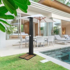 VidaXL Gartendusche Poly Rattan WPC, 44750, 214cm Höhe, Mit Bodenplatte