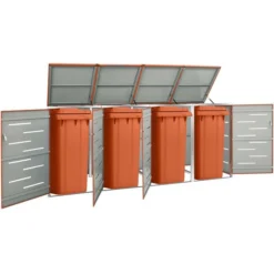 VidaXL Mülltonnenbox 149565, Bis 240 Liter, Für 4 Mülltonnen, Abschließbar, Orange, Edelstahl