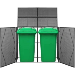VidaXL Mülltonnenbox 46730, Bis 240 Liter, Für 2 Mülltonnen, Schwarz, Polyrattan