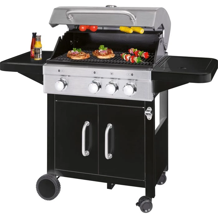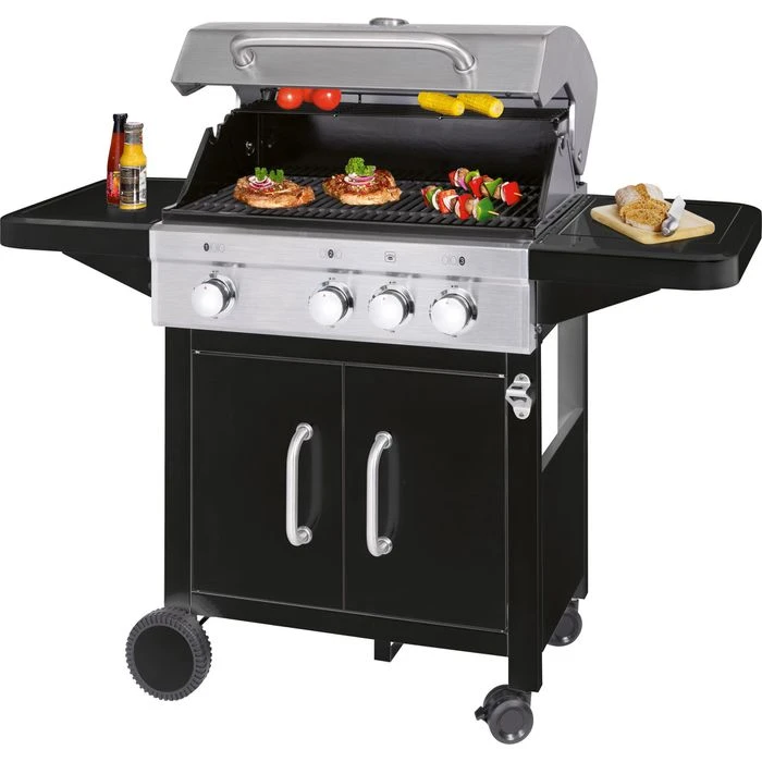 • Große Grillfläche, bestehend aus zwei gusseisernen Grillrosten
