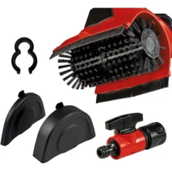 sonstiges: werkzeugloser Bürstenwechsel auf Knopfdruck, Reinigung von Stein, Holz, Kunstrasen sowie Ecken, umlaufende Schutzhaube für perfekten Spritzschutz