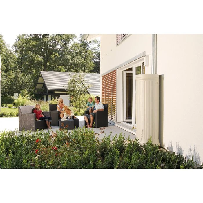 âą 2 Gewindeöffnungen fĂŒr Auslaufhahn, Gartenschlauch oder Entleerung