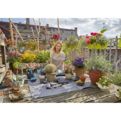 sonstiges: geeignet zum Bepflanzen auf Balkon und Terrasse, schützt den Untergrund vor Verschmutzungen und erleichtert Pflanzarbeiten, durch Druckknöpfe an den Ecken lassen sich die Ränder aufstellen, verschließbare Öffnung in der Mitte der Pflanzmatte sowie vier Tragegriffe erleichtern das Reinigen und Entleeren, integriertes Kniekissen erleichtert die Pflanzarbeiten zusätzlich, Pflanzmatte ist leicht zu reinigen und kann nach Gebrauch platzsparend zusammengefaltet werden