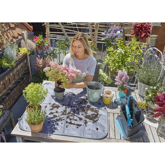 sonstiges: geeignet zum Bepflanzen auf Balkon und Terrasse, schĂŒtzt den Untergrund vor Verschmutzungen und erleichtert die Pflanzarbeiten, durch Druckknöpfe an den Ecken lassen sich die RĂ€nder aufstellen, Pflanzmatte ist leicht zu reinigen und kann nach Gebrauch platzsparend zusammengefaltet werden