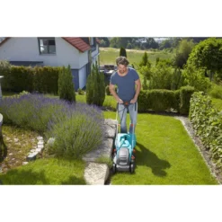 sonstiges: speziell gehärtete Messer für optimale Schnittergebnisse, extra Rasenkämme an den Seiten vom Gehäuse für problemloses Mähen entlang von Mauern und Randsteinen, einfacher Transport und platzsparende Aufbewahrung durch klappbares Faltgestänge