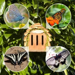 Das Insektenhotel ist eine Nist- und Überwinterungshilfe für Schmetterlinge und bietet eine hervorragende Beobachtungsmöglichkeit der Tiere in ihrem natürlichen Lebensraum. Die Insekten nisten sich ein und bestäuben die Blumen in Ihrem Garten.