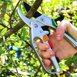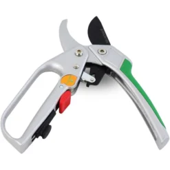 sonstiges: für die professionelle Arbeit auf Plantagen und in größeren Gärten, mit zugeschalteter Ratsche für besondes trockenes Schnittgut, Bypass-Funktion für sauberen und geraden Schnitt, obere Klinge aus SK5 Stahl (antihaftbeschichtet) und untere Klinge aus S50C Stahl
