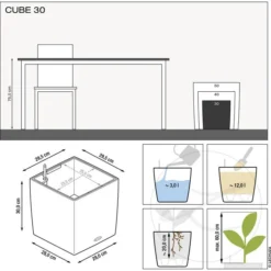 Lieferung: inkl. Pflanzeinsatz (25,5 x 25,5 x 20 cm), Wasserstandsanzeiger, Trennboden, Lechuza Pon