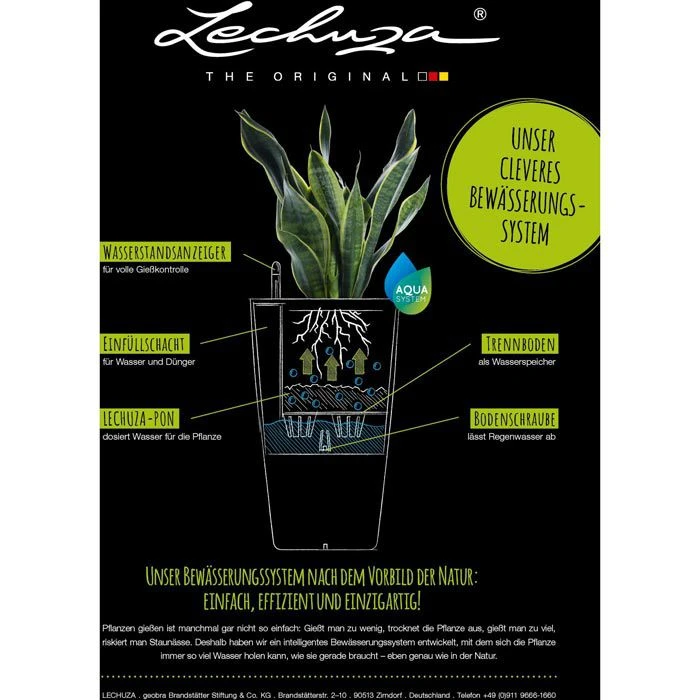 Lieferung: inkl. Pflanzeinsatz (12 x 12 x 14 cm), Wasserstandsanzeiger, Lechuza Pon